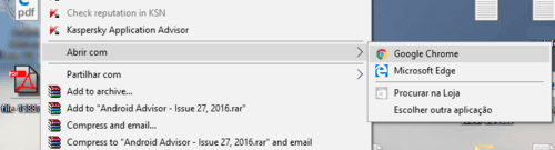 1. Comece por abrir o arquivo PDF que pretende dividir usando o Google Chrome. Você poderá fazer isso arrastando o arquivo PDF para cima da janela do Chrome, ou pressionando com o botão direito do rato no arquivo - Abrir com - Google Chrome.